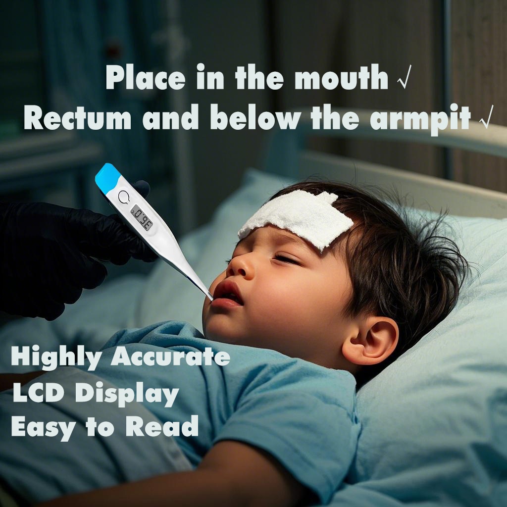 Bu profesyonel sert uçlu dijital termometre, günlük ev bakımı, klinikler, hastaneler ve sağlık kurumları için hızlı, doğru ve güvenilir sıcaklık takibi sağlar. Sert ve sağlam bir prob ile tasarlanan bu termometre, ağız, koltuk altı ve rektal sıcaklık ölçümlerinde istikrarlı temas ve tutarlı okumalar sağlar.