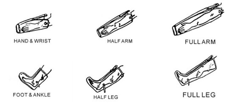 1. Kol için üç farklı boyut: el ve bilek, yarım kol, tam kol