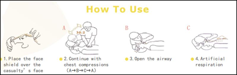 ✔Uygulama kapsamı:CPR yüz siperliği, kalp masajı sırasında koruma sağlamak amacıyla tasarlanmıştır.