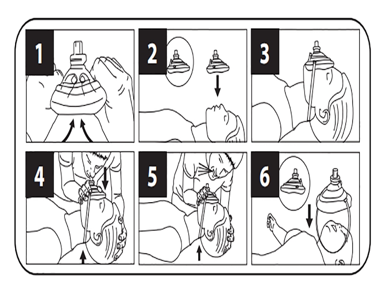 4. Gösterildiği gibi kapatın ve göğüs yükselene kadar tek yönlü vanaya yavaşça üfleyin.