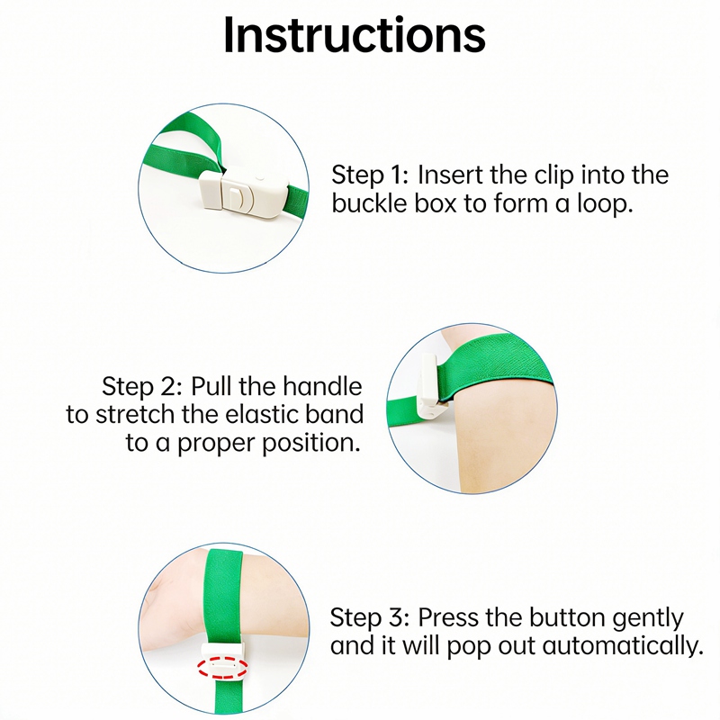 Bu, geleneksel kauçuk turnikelerden farklı, yeni tip bir tokalı turnikedir.